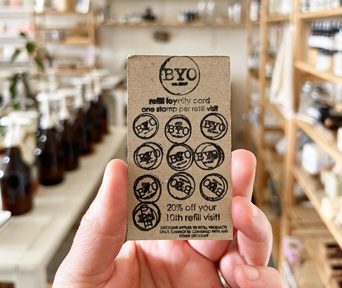 Get a stamp for every in-store refill visit when you bring your own container and get 20% off refills on your 10th visit!