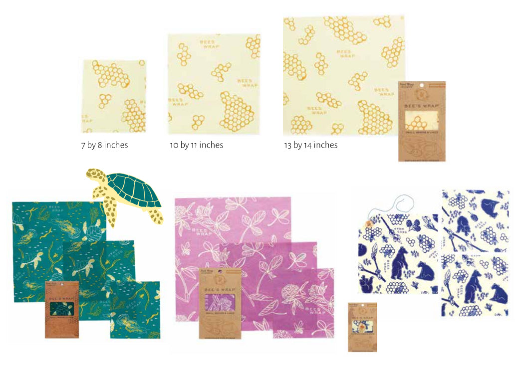 Bee’s Wrap is made with organic cotton, sustainably harvested beeswax, organic jojoba oil, and tree resin. Our wraps are fully biodegradable and compostable.