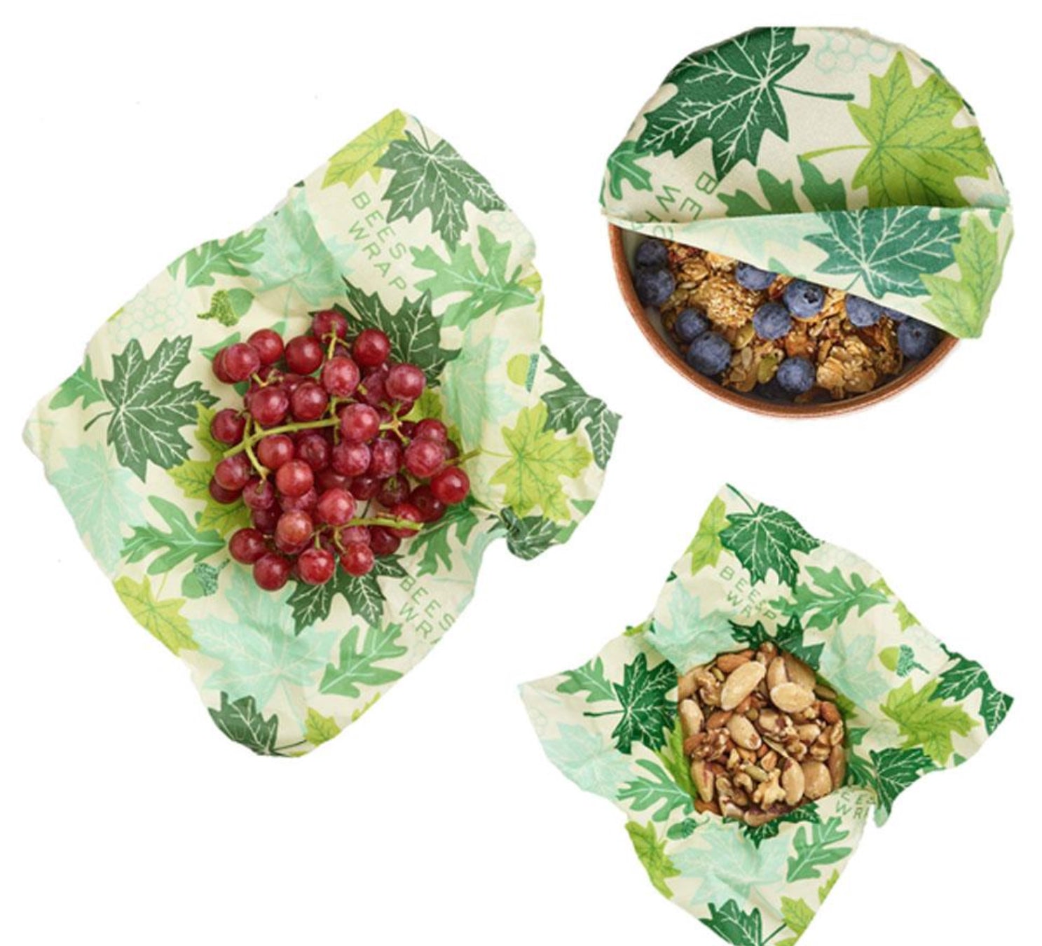 Wrap up a hunk of cheese, half a lemon, a loaf of homemade bread. Use the warmth of your hands to form our wraps around a piece of food or over a bowl or casserole dish. As the wrap cools, the seal will hold its shape.