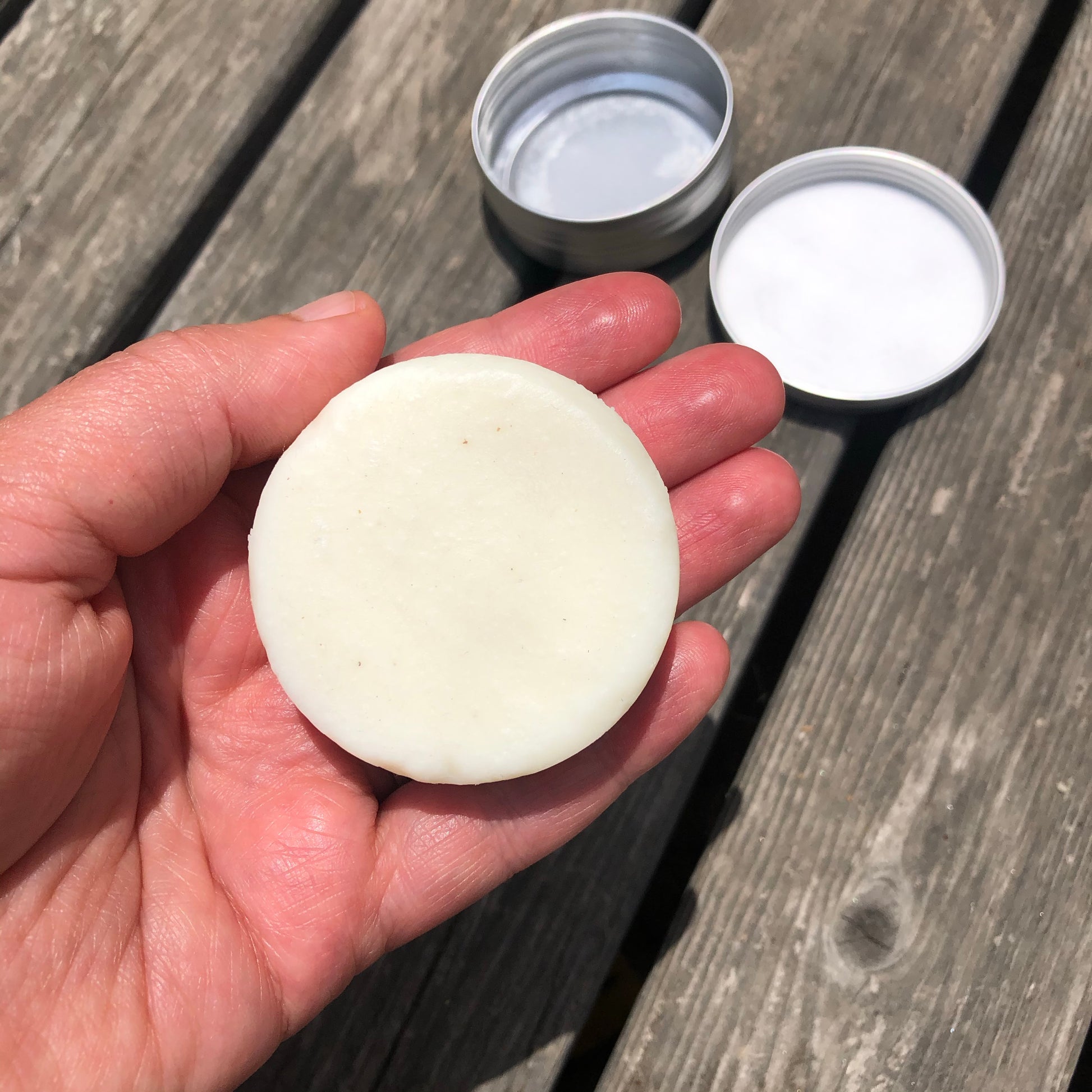 Ingredients: Herbal infused coconut oil, beeswax, mango butter, essential oil blend of lemon eucalyptus, citronella, cedarwood, geranium, tea tree, black pepper, and lavender, arrowroot powder.