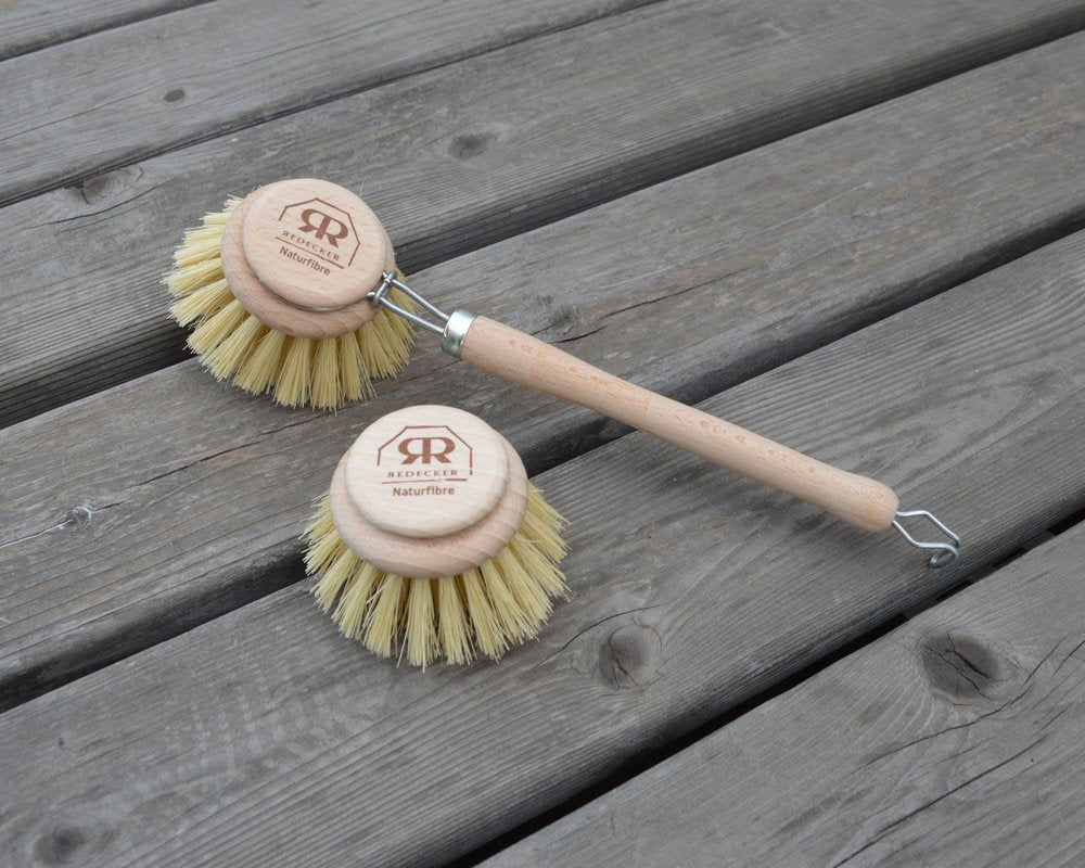 A medium bristle made of tampico fibers. Made for scrubbing food off of dishes.