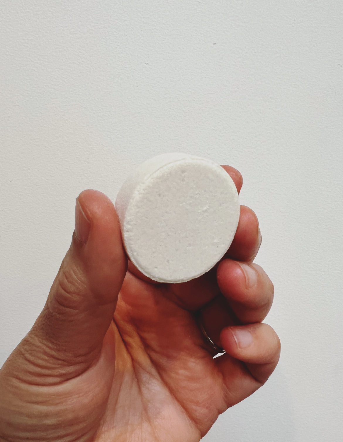 Storage note: if stored in places with fluctuating humidity and temperature, the rounds can form small feathery crystals, this is simply the mint oils and essential oils coming out of the pucks a bit and re-forming. It is perfectly fine and safe to use.