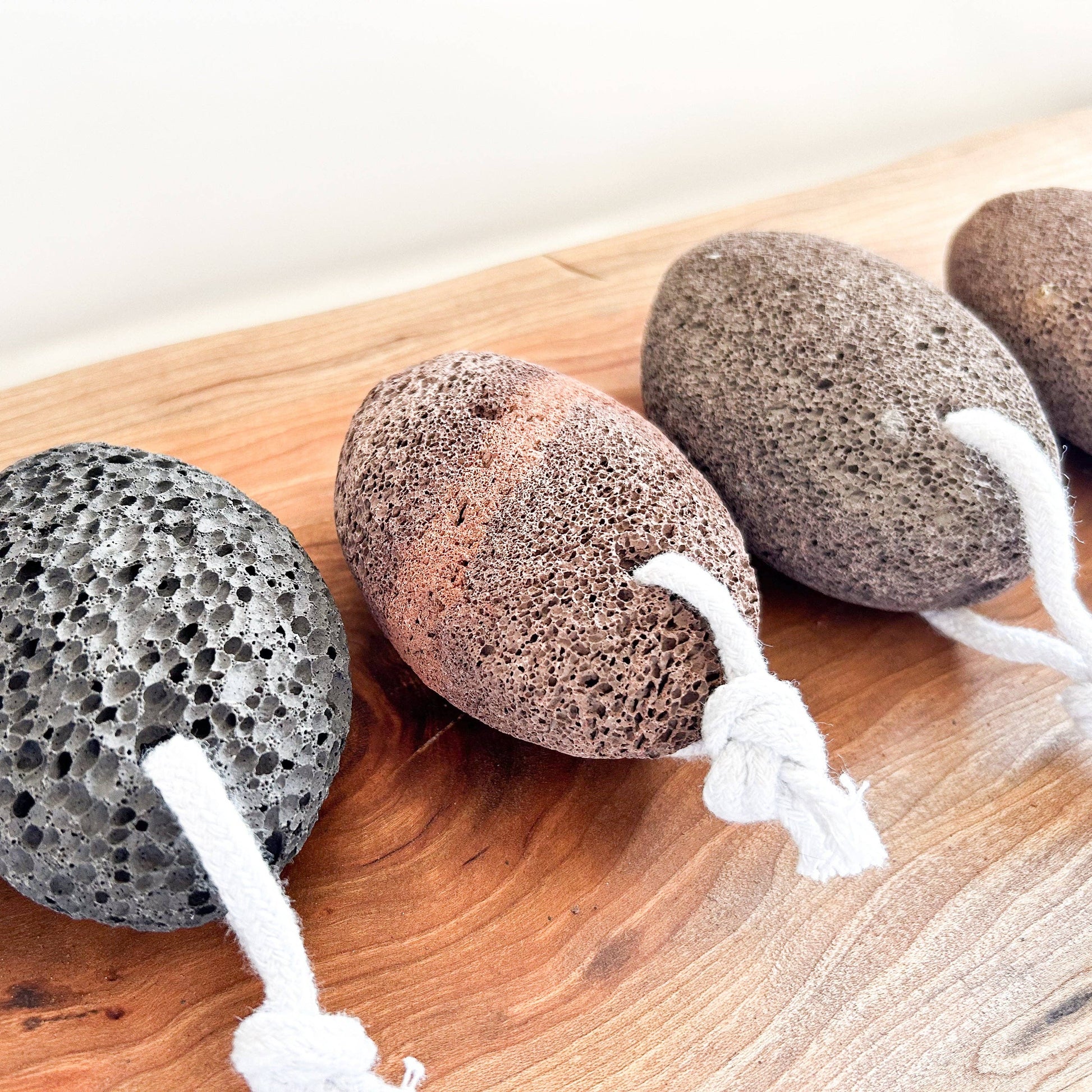 Transform your skincare routine with this all-natural Lava Pumice Stone, designed to gently exfoliate and soften rough areas of skin. Each stone is uniquely formed from cooled lava, making it naturally porous, lightweight, and highly effective for smoothing calluses and rough patches. With its durable, natural rope, this pumice stone is easy to store and convenient to hang for drying after each use. As a product of nature, every stone varies slightly in color and texture, ensuring you receive a one-of-a-kind piece. Perfect for achieving soft, smooth skin in an eco-friendly way, this pumice stone is a beautiful addition to any bath or skincare routine. Dimensions: Approx. 4" x 3" x 1.75"