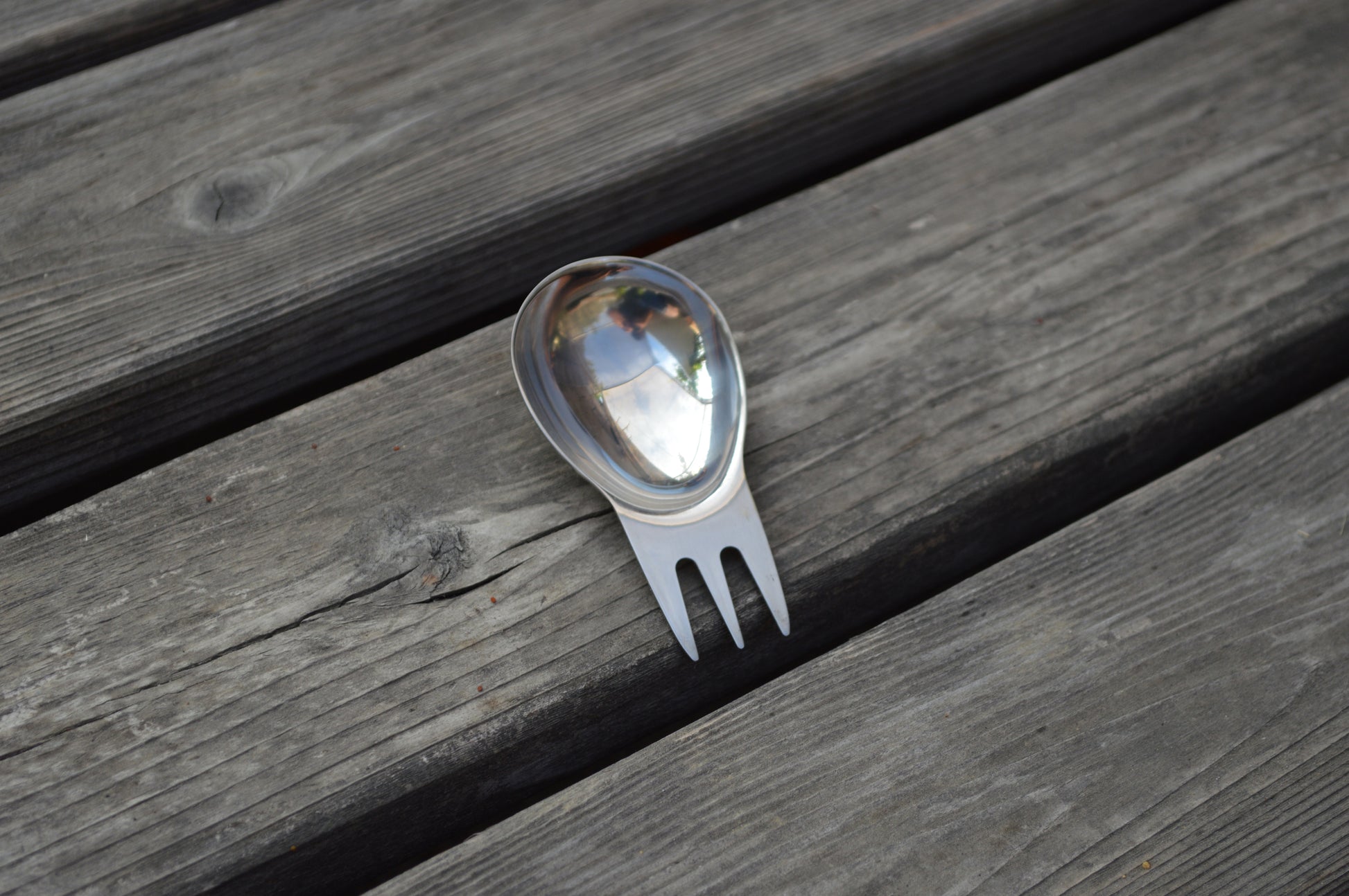 With a generous size bowl for scooping on one end and three tines to pluck pasta, fruit or whatever on the other, this stainless steel spork is versatile, durable and ultra-reusable utensil.