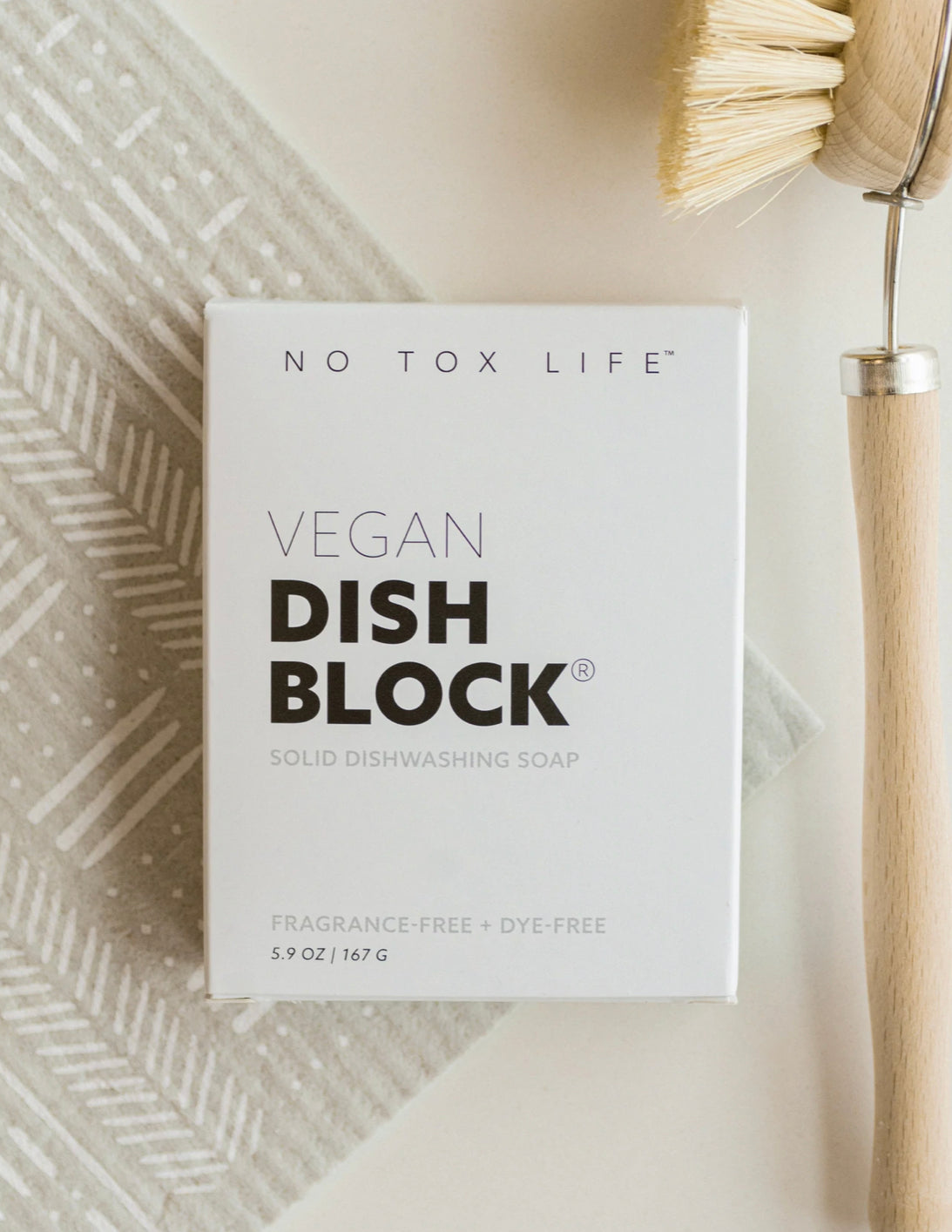 How to use: Rub wet sponge on Dish Block bar until it lathers, then wash dishes as usual! Use a scrubber for tougher stains on pots and pans. Store on a well-draining soap dish or rack to keep it dry.